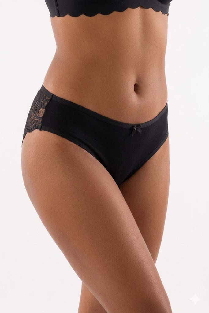 Chiloți Brazilian din Bumbac cu Spate Integral din Dantelă Florală, Negru (M-XXL)