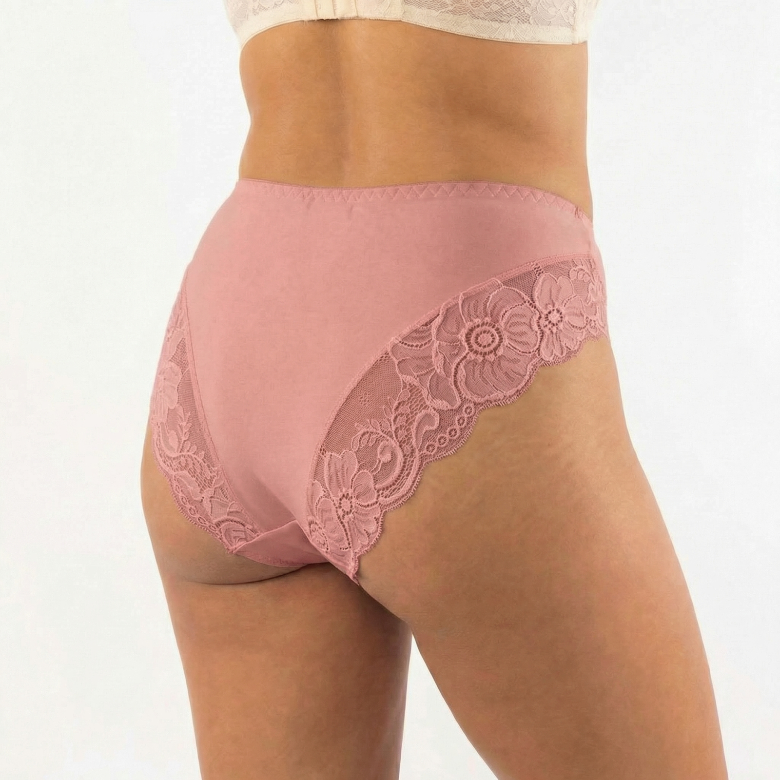 Chiloți Damă Bumbac cu Margini din Dantelă, Talie Medie, Roz (M-XXL)